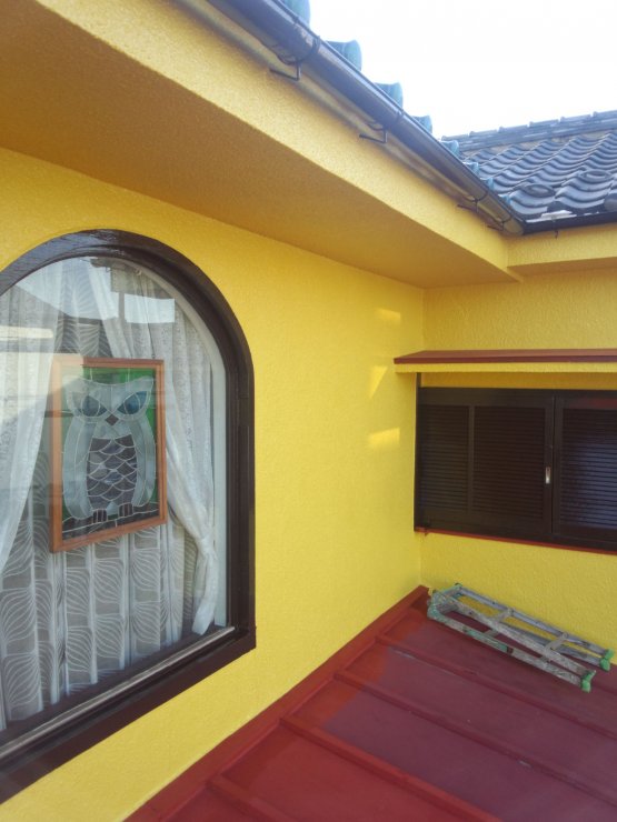 トタン部分の掃除、ケレンをしながら錆止めを塗っていきます。